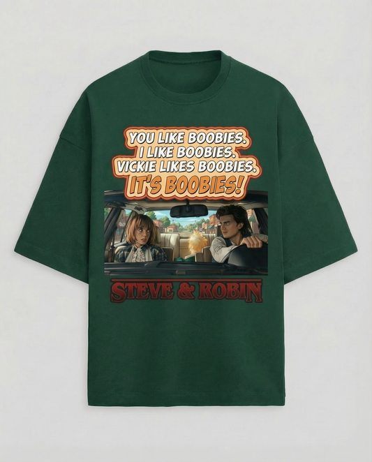 STEVE & ROBIN “IT’S BOOBIES!” TERRY OVERSIZED TEE